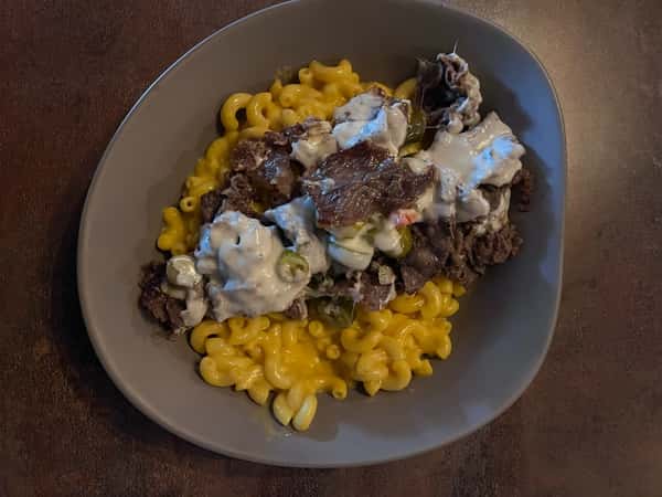 So delicious, it will blow you away! Mac & Cheese, Bacon, Onion Strings