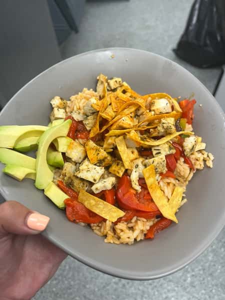 Cobb's rice blend topped with Honey-Sriracha Chicken, fire-roasted red pepper, corn salsa, tortilla chips & avocado